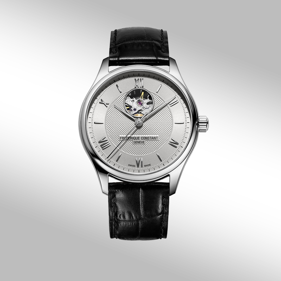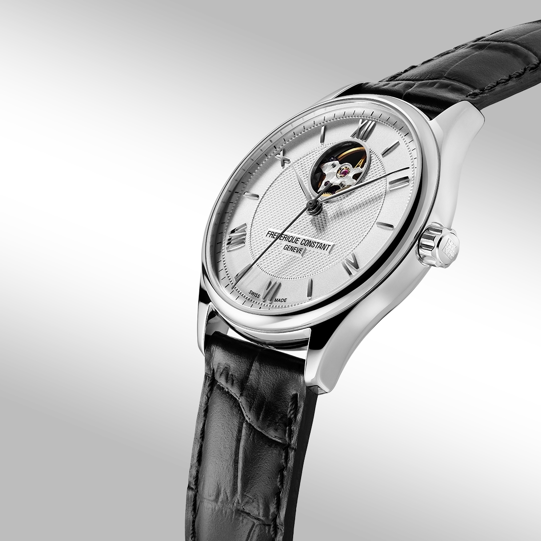 Frederique Constant continuously strives to offer elegant in-house Swiss-made watches at the best price range Accessible Luxury For years, the brand has been effortlessly presenting watches who surprise the most skeptics and turns dreams into reality. The Accessible Luxury motto lives through each Frederique Constant watch and makes owning a Swiss excellence-infused timepiece the simplest of tasks. With the latest Classics Index Automatic, Frederique Constant continues to prove that style and savoir-faire are but a heartbeat away.Classics Index Automatic Frederique Constant’s Classics line is fitted with FC-303 automatic movement and a 38-hour power reserve. The Navy blue or light grey dial is embellished with Guilloché decoration featuring hours, minutes, seconds and date opening at 3 o’clock. The watch is offered in polished stainless steel, 40 mm size either with a croco calf leather bracelet or with a polished stainless-steel bracelet for the Navy-blue stainless-steel model. Classics Index Automatic Heart Beat The first Heartbeat timepiece was launched in 1994 and quickly became an iconic signature of the brand. The purpose of the Heart Beat development was to show that these models were mechanical. With this in mind, the company added an aperture at the position of the balance wheel to show the beauty of the mechanical movement, of its “heartbeat”. MOVEMENT FC-310 caliber, automatic movement. 38-hours power reserve, 26 jewels, 28'800 alt/h. CASE Polished stainless steel. 40 mm diameter. See-through case-back. Convex sapphire crystal. Water-resistant up to 5 atm. DIAL Silver color dial, guilloché decoration and pearl black applied roman numeral indexes. Hand polished pearl black hands. Heart beat opening at 12 o’clock. STRAP Black leather croco calf leather strap.