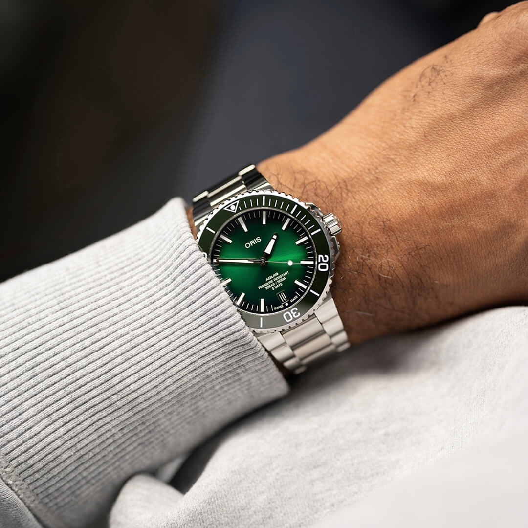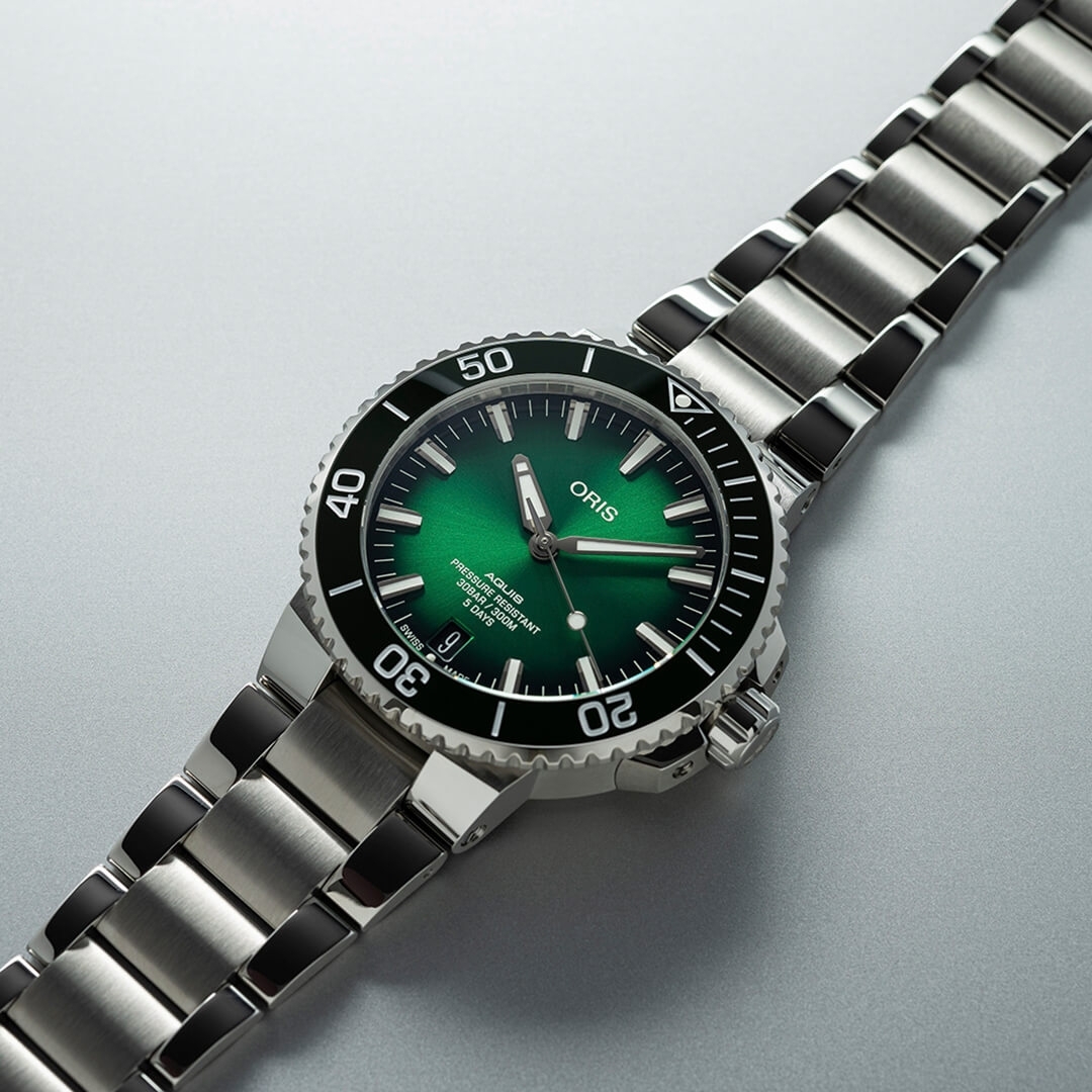 Men’s watch by Oris, part of the Aquis Date Relief, automatic