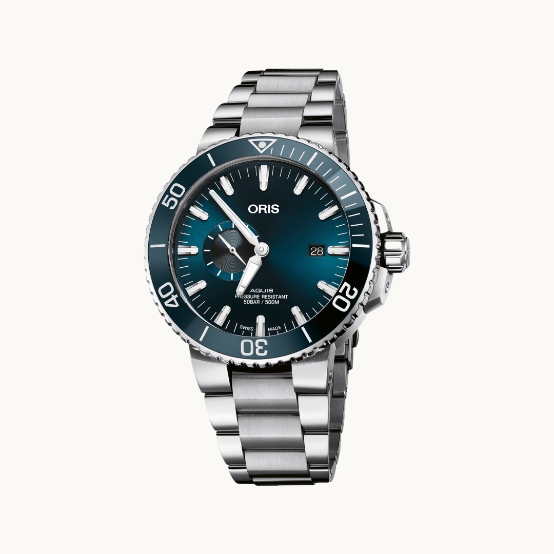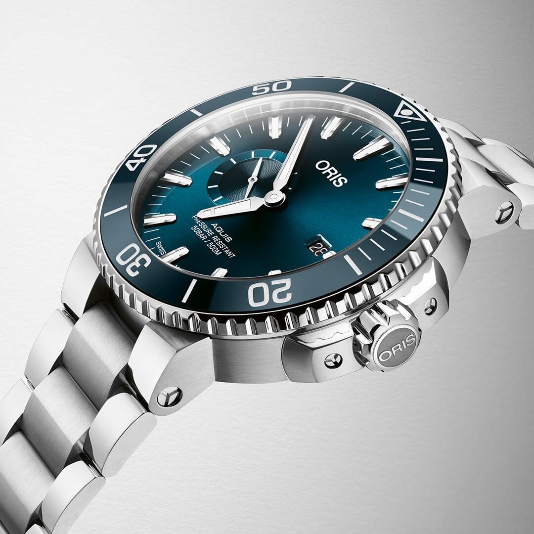 Men’s watch by Oris, part of the Aquis Small Second Date collection, automatic