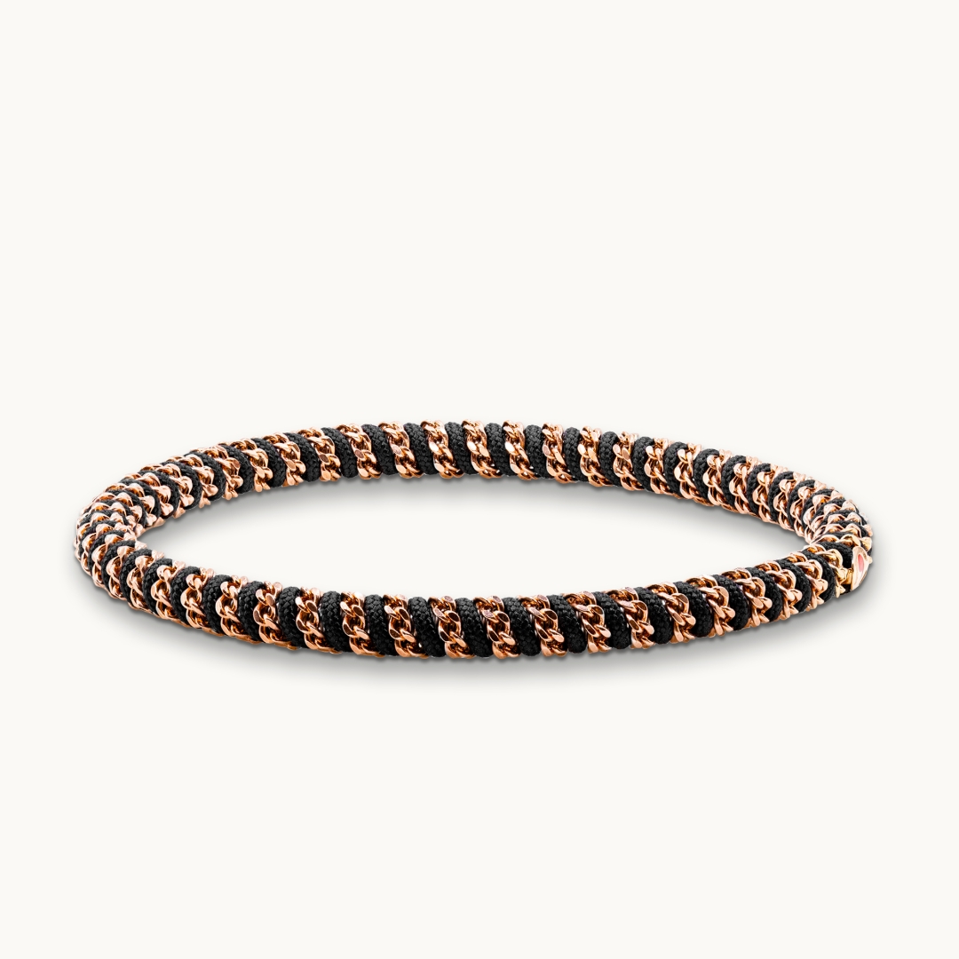 - Men's bracelet from DeMeglio, part of the Giò collection, crafted with nautical cord and 18-karat rose gold.