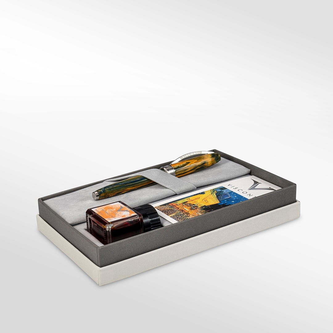 - Each Van Gogh fountain pen is presented with a personal kit, including a booklet, a bookmark and a personalized ink bottle.