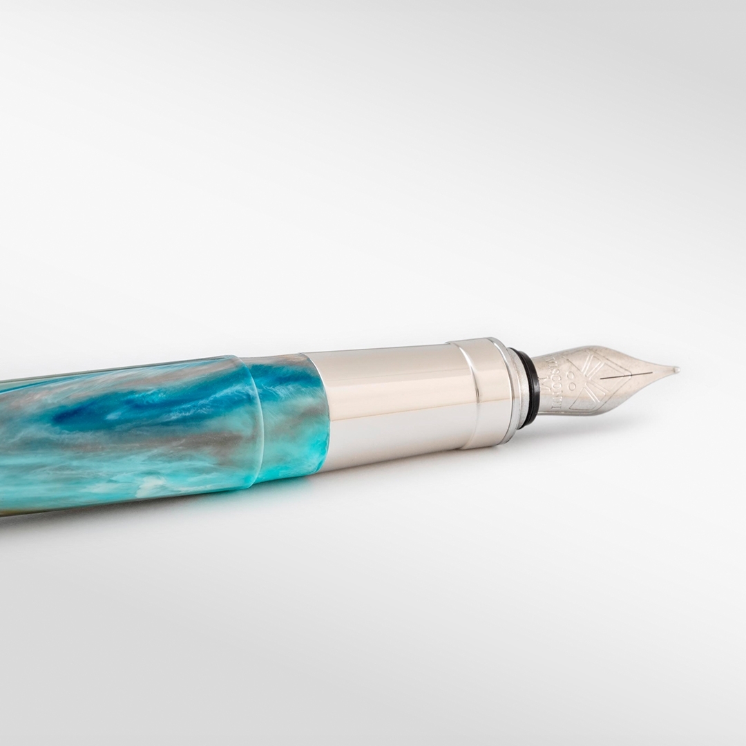 - The fountain pen is crafted in acrylic resin and brass (zinc and copper alloy).