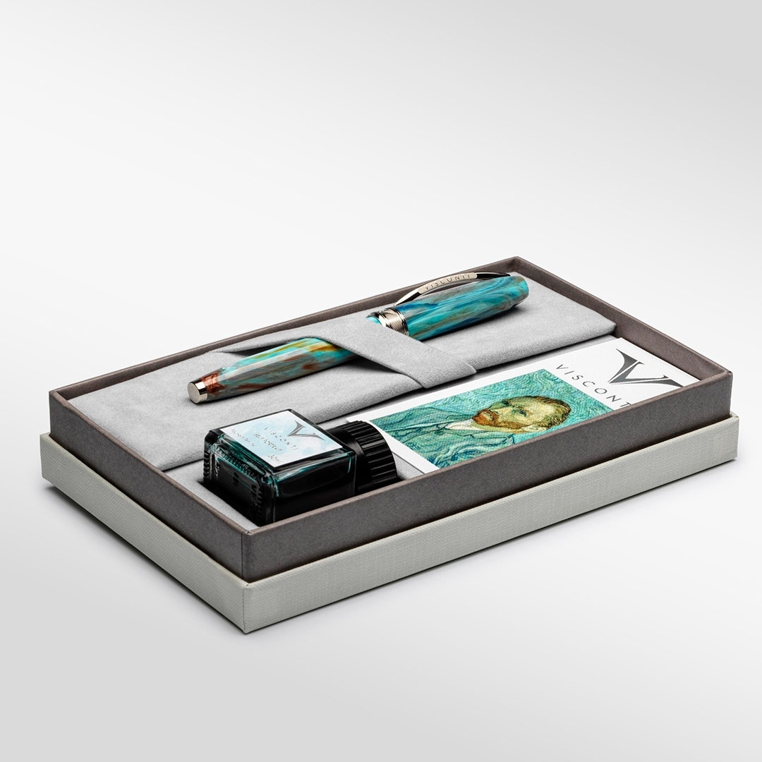- Each Van Gogh fountain pen is presented with a personal kit, including a booklet, a bookmark and a personalized ink bottle.