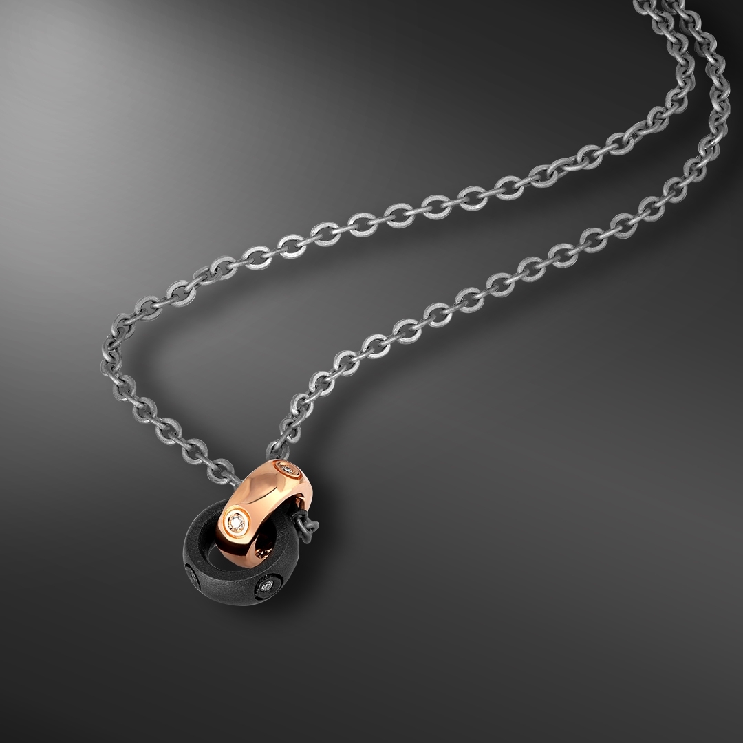 Necklace with Titanium, 18-Karat Rose Gold and Black Diamonds