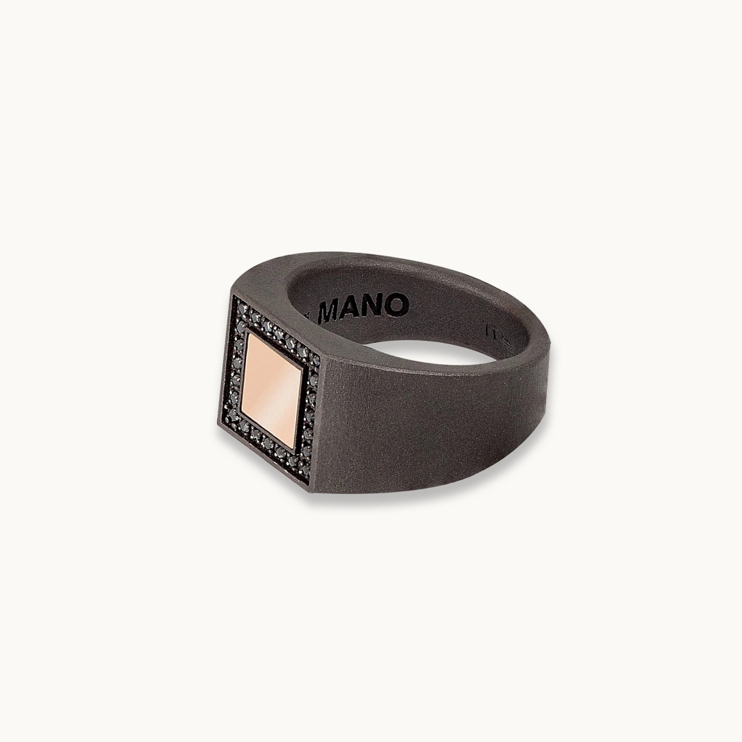 Ring with Titanium, 18-Karat Rose Gold and Black Diamonds