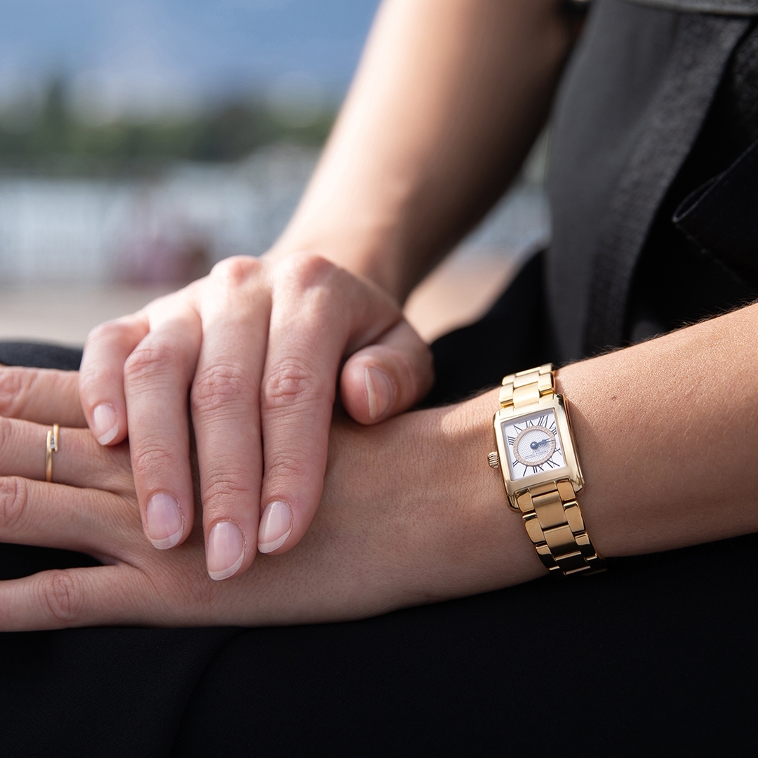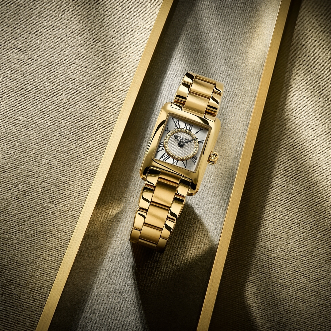 Boasting clean lines an an elegant polished case, this watch sports a classic white dial with a decorative Clous de Paris motif and traditional Roman-numeral hour markers. The square shape makes it the perfect fit for any woman's wrist. The quintessential definition of refined time. The Classics Carrée Ladies represents the utmost of elegance bringing timeless sophistication. Square-shaped timepieces have always held a special place in the history of watchmaking and remained the ideal classic dress watch until nowadays. Movement- FC-200 Type of movement - Quartz Jewels - 4 Case Material - Stainless steel Colour - Yellow gold Diameter or dimensions (mm) - 30×21 Thickness (mm) - 5.8 Lug width (mm) - 15 Water-resistance (ATM) - 3 Case Material - Stainless steel Colour - Yellow gold Dial Colour - Silver colour Finishing - Guilloché & sunray Indexes - Printed roman numerals Number of diamonds - 35 Number of carat - 0.06