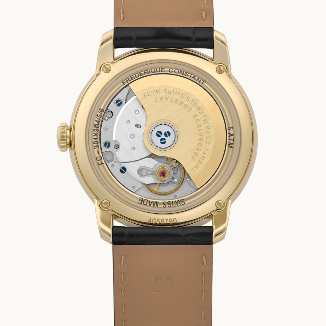 A subtle combination of tradition and elegance, the Classics Premiere timepieces are housed in a delicate 38,50mm diameter case. On the dial, the applied indexes evolve around a mother of pearl, diamond-setting or a colimaçon decoration. Through the open caseback, which features a glassbox giving a magnifying glass effect on the back of the watch, one can admire the Côtes de Genève enhancing the G100 La Joux-Perret movement. Classics Première The hallmark of all things classic is that they never go out of fashion. Fine Geneva watchmaking wrote the style guide in question over two centuries ago, and its precepts are just as relevant in 2024. Today, only a few minor details have been changed and refined, plus the added benefit of twenty-first century accuracy and reliability. The Classics Première line embodies this approach, combining tradition and modernity. It comes in a diameter of just 38.5mm: timeless and perfect for any wrist. Borne on a calfskin strap equipped with a discreet pin buckle, it exudes an air of balanced – and classic – restraint. Three central hands glide above a dial divided into two sections, with a sunburst minute circle marked out in Arabic numerals and an hour ring with hours denoted in Roman numerals. The central section is decorated with a fine guilloche pattern that adds both depth and texture. The piece is powered by a self-winding automatic mechanical movement that can be viewed through the transparent caseback. The watch boasts a power reserve of 68 hours – the best part of three days – so you can take it off on Friday and be sure it will still be keeping time on Monday morning. Additional information Highlights - Hours, Minutes, Seconds Type of movement - Automatic Movement REFERENCE - FC-301 Type of movement - Automatic Power reserve (hours) - 68h Vibrations per hour - 28'800 alt/h Jewels - 24 Case Material - Stainless steel Colour - Yellow gold Diameter or dimensions (mm) - 38.50 Thickness (mm) - 10.67 Lug width (mm) - 20 Water-resistance (ATM) - 5 Dial Colour - Silver colour Finishing - Embossed & sunray Indexes - Applied indexes & applied roman numerals