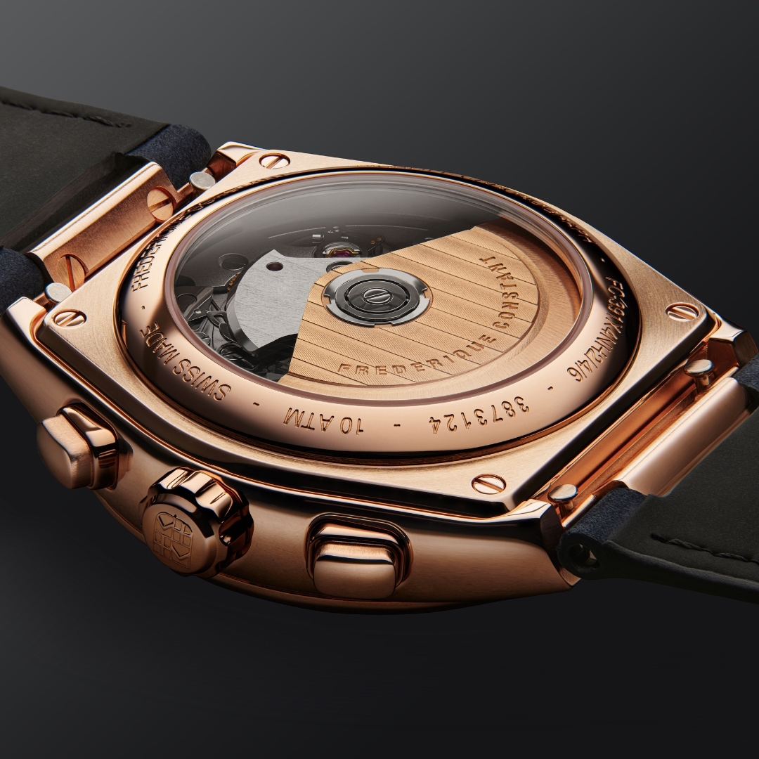 Emblematic complication of watchmaking, the Highlife Automatic Chronograph is equipped with the FC-391 movement, offering a 60-hour power reserve. A NEW CHRONOGRAPH Frederique Constant’s showcase collection is celebrating its twenty-fifth anniversary this year and unveiling brand new variations of its sports model, the 41-millimetre Chronograph Automatic, to mark the occasion. The non-limited edition featuring the exquisitely elegant combination of a rose gold-plated case and a midnight blue dial. Powered by the FC-391 calibre with its 60-hour power reserve, the piece will comes with two interchangeable straps, as is the custom. Additional information Functions - Hours, Minutes, Seconds, Date at 4 o'clock, Mechanical Chronograph Type of movement - Automatic Movement REFERENCE - FC-391 Type of movement - Automatic Power reserve (hours) - 60h Vibrations per hour - 28'800 alt/h Jewels - 26 Case Material - Stainless steel Colour - Rose gold Diameter or dimensions (mm) - 41 Thickness (mm) - 14.22 Lug width (mm) - 22 Water-resistance (ATM) - 10 Dial Finishing - Matt with globe pattern embossed in the center Indexes - Applied indexes