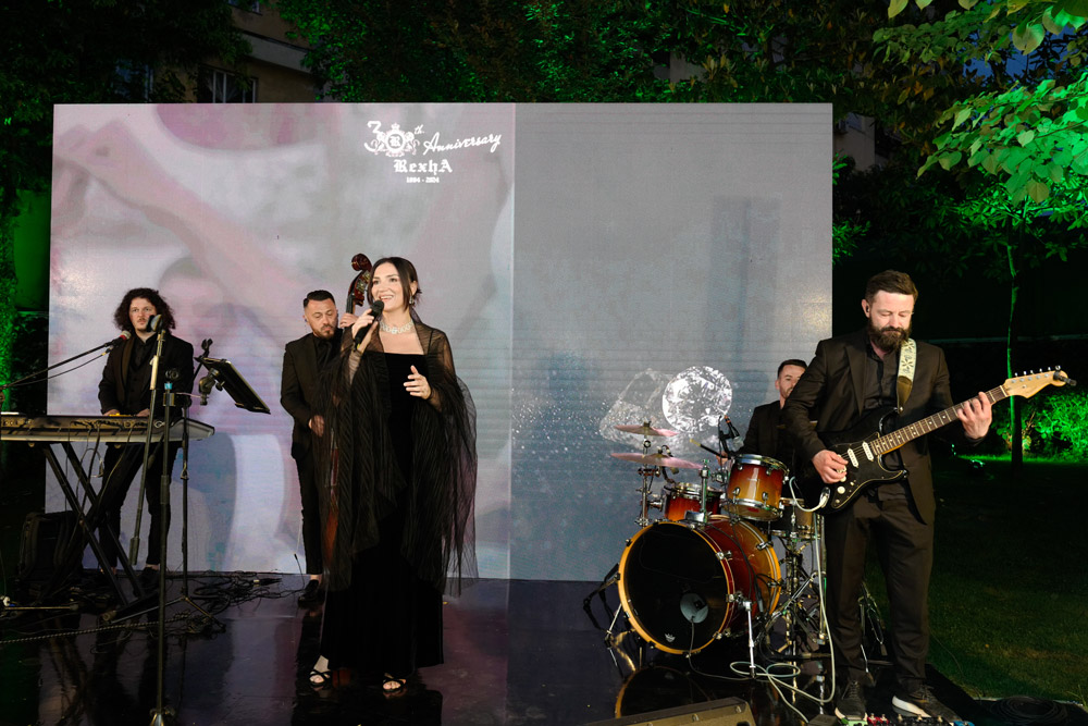 Gjatë gjithë natës, mbizotëronte atmosfera e kuruar me kujdes, që nga dekorimet e bollshme me lule deri te ndriçimi i butë që e përmblodhi vendin në një nuancë të artë. Muzika live nga znj.Marsela Çibukaj ofroi një kolonë zanore të sofistikuar, duke e rritur më tej atmosferën e rafinuar. Të pranishmit ndanë histori dhe festuan tre dekada të përkushtimit të Rexha Gold ndaj bukurisë dhe mjeshtërisë.