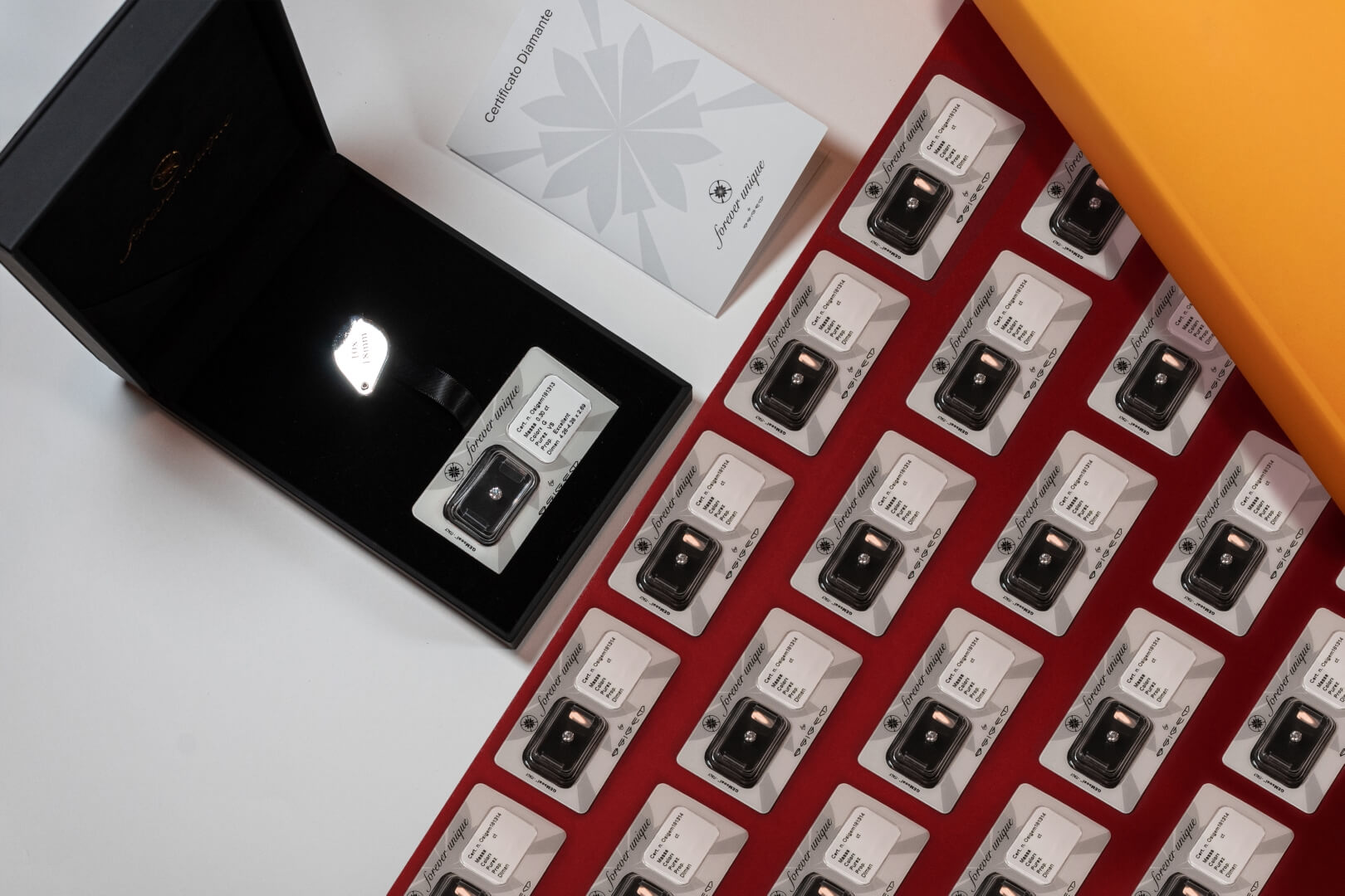 Zbuloni Magjinë: Çdo blister diamanti mban një premtim me vlerë që kapërcen kohën. Me përmasa, shkallë ngjyrash dhe qartësi që i përshtaten çdo shije, diamantet tona vijnë me sigurinë e shtuar të një certifikate dhe një lupe argjendari, duke siguruar autenticitet dhe cilësi.