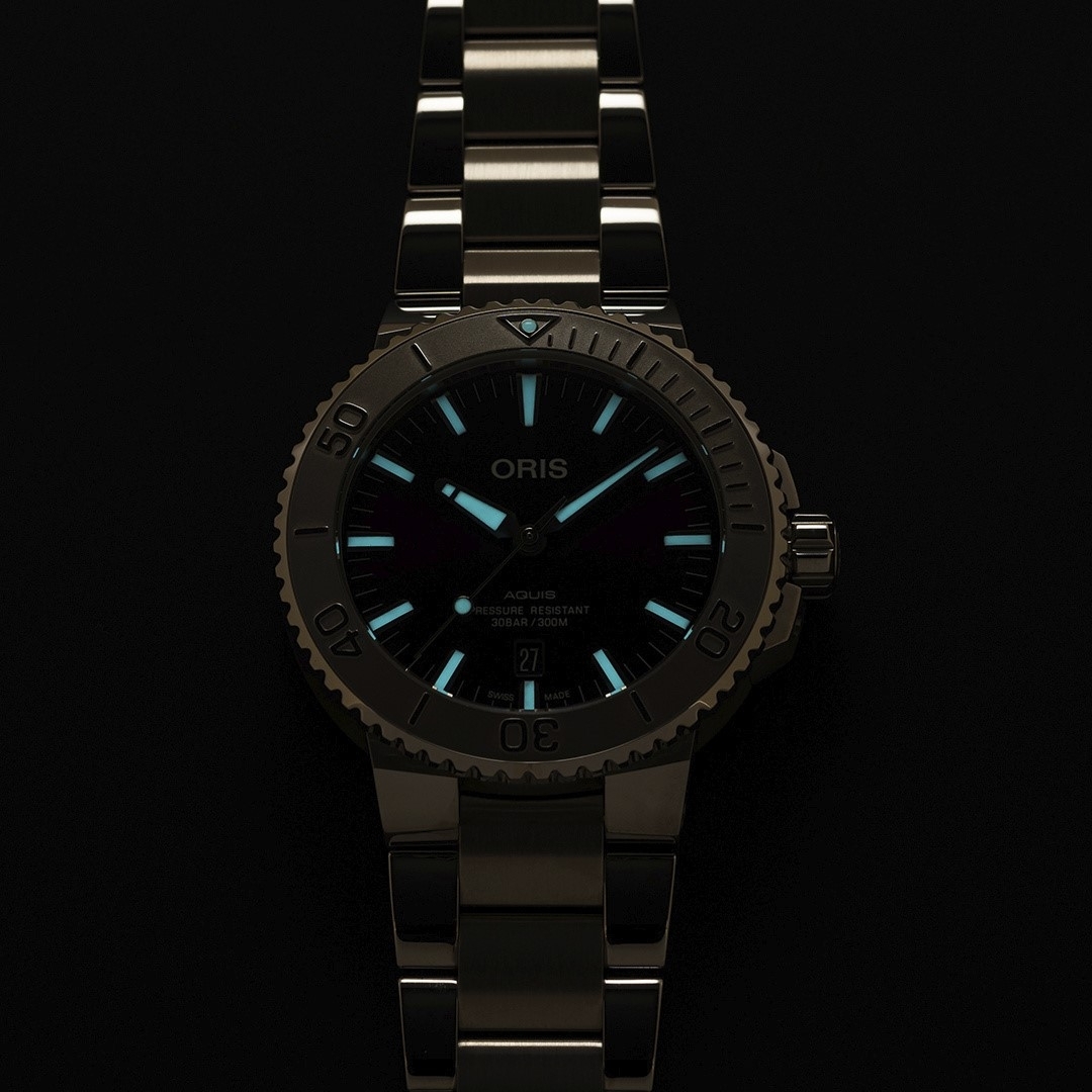 Orë për meshkuj nga Oris, pjesë e koleksionit Aquis Date Relief, automatike