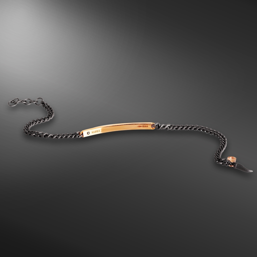Unazë për Meshkuj në Titan, Flori të Kuq 18 Karat dhe Diamante të Zinj