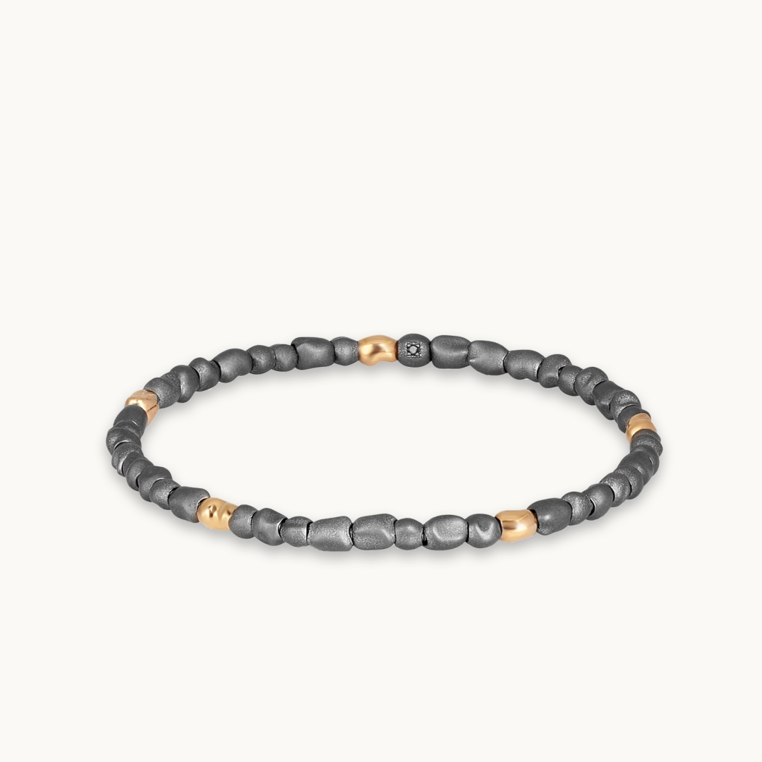 - Byzylyk për Meshkuj nga Mano J, pjesë e koleksionit Sassi Small, i punuar në mënyrë artizanale në titan gri me finiturë mat, sustë titani dhe elemente floriri të kuq 9 karat.
