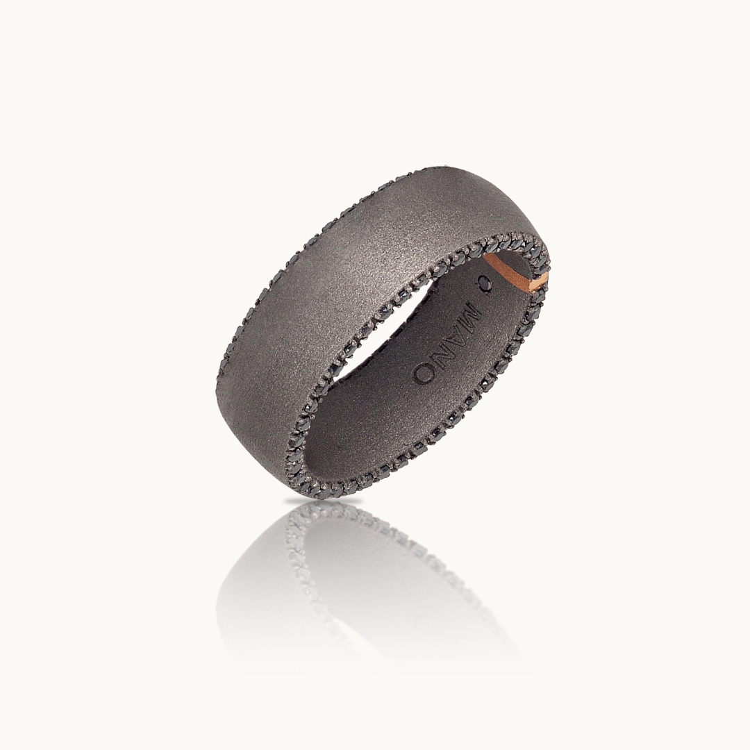 Unazë për Meshkuj në Titan, Flori të Kuq 18 Karat dhe Diamante të Zinj