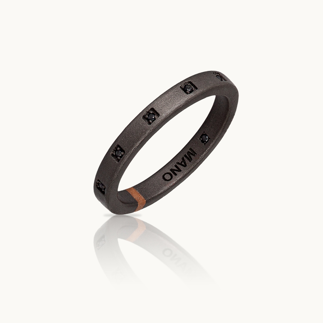 Unazë për Meshkuj në Titan, Flori të Kuq 18 Karat dhe Diamante të Zinj